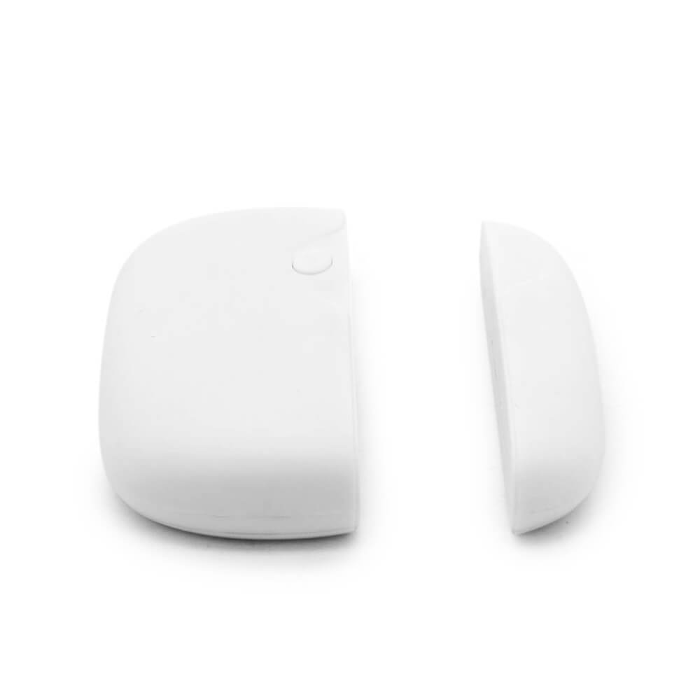 Датчик открытия двери используется в комплекте с электронной сигнализацией «Страж». Датчик выполнен в корпусе из белого пластика и состоит из двух частей. В меньшей по размеру части установлен постоянный магнит. Эта часть крепится на подвижный элемент конструкции - полотно двери или створку окна. Сам датчик крепится на оконную раму или косяк двери. При открывании на расстояние до 2 см происходит срабатывание магниточувствительного элемента – геркона и по радиоканалу на главный пульт передается сигнал. Питается датчик от литиевой батареи. Когда заряд батареи опустится ниже критической величины, на пульт поступит сигнал о необходимости замены аккумулятора.